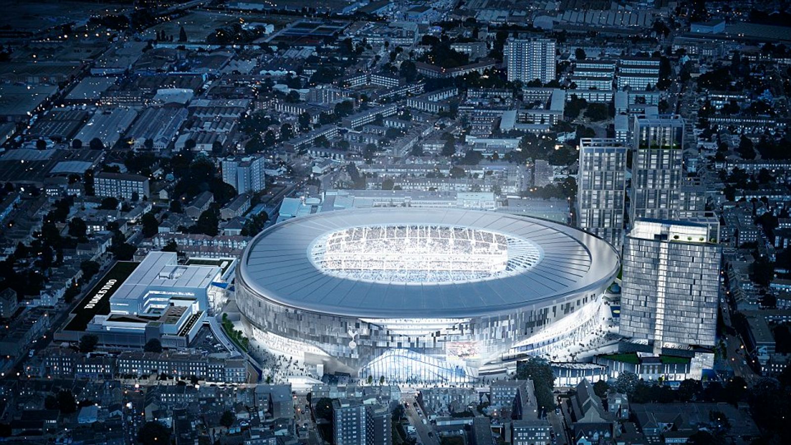El nuevo estadio también sirve como sede de al menos dos de los Juegos de Londres de la Liga Nacional de Fútbol Americano (NFL) cada temporada.[6] La NFL invirtió 10 millones de libras esterlinas (12,8 millones de dólares) en el nuevo estadio de Tottenham, poco más del 1 % del presupuesto.[7] El estadio presenta la primera cancha retráctil divisoria del mundo, y es el primer estadio en el Reino Unido que tiene dos canchas en el interior: una cancha de césped retráctil para fútbol y una superficie sintética debajo para juegos de la NFL y otros eventos. Se estima que el proyecto costará alrededor de £ 1 mil millones y pretende ser un catalizador para un esquema de regeneración más amplio en Tottenham.